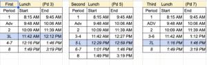 A days: Monday/Wednesday, B days: Tuesday/Thursday, Fridays Rotate